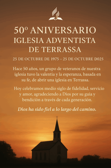 El sábado 18 de octubre, con un templo a rebosar debido a la visita de otras iglesias del distrito, la congregación de Terrassa celebró su 50º aniversario con música, un culto especial dirigido por el pastor Xavier Francés y una comida comunitaria.