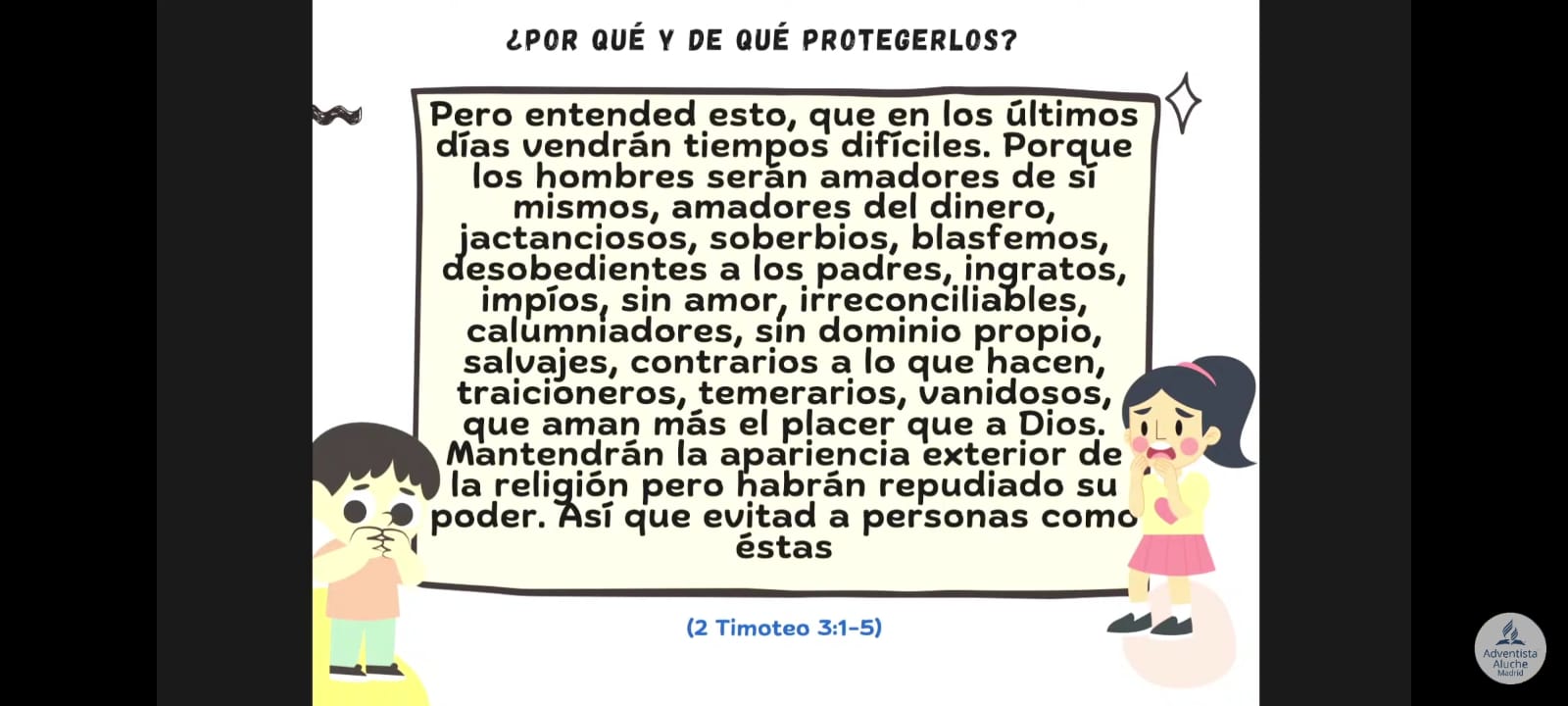 Bajo el lema: «Basta de silencio», durante el viernes 14 y el sábado 15 de noviembre de 2025, la Iglesia Adventista del Séptimo día de Madrid-Aluche, contó con la vista de la psicóloga clínica Millys Sánchez, directora Adjunta del Club de Exploradores a nivel nacional. Millys compartió con nosotros valiosa información sobre el abuso infantil: como tratar, prevenir y sanar situaciones relacionadas con este sensible tema.