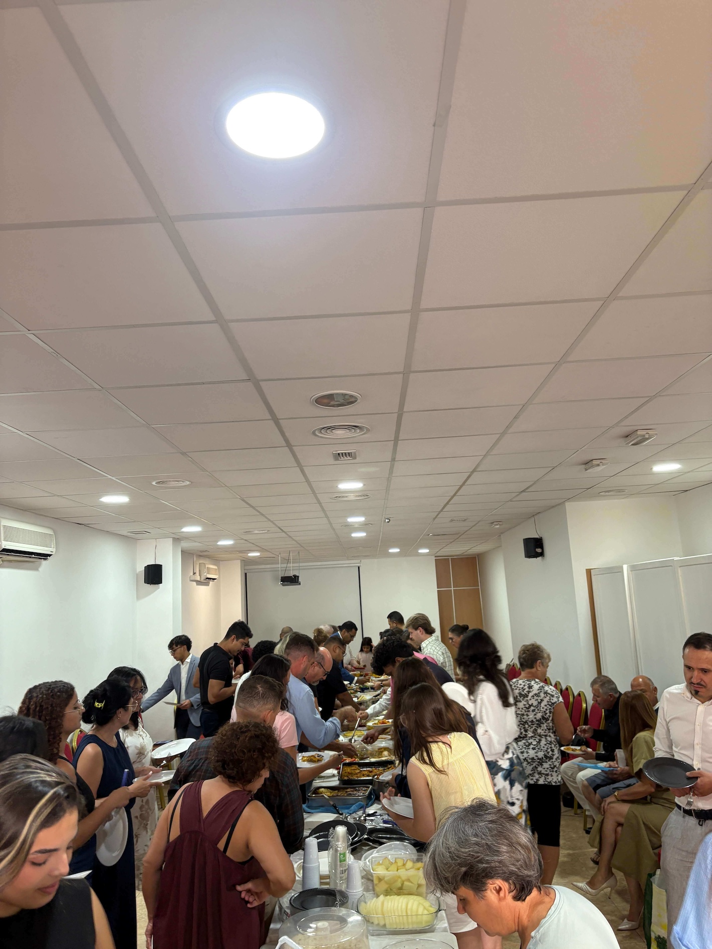 Después del servicio, todos los hermanos disfrutaron de una comida fraternal, preparada con esmero y cariño por los propios miembros. Fue un momento especial para compartir, conocerse mejor y estrechar los lazos como familia de fe.