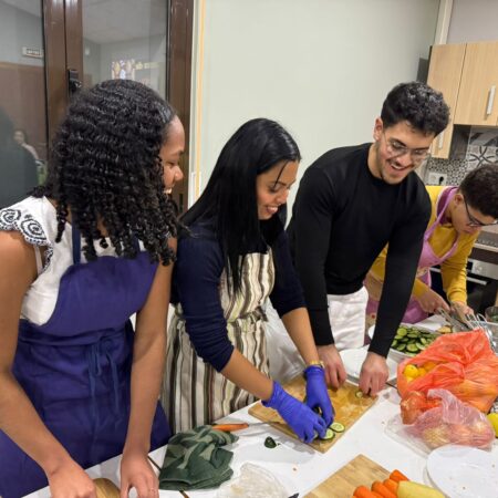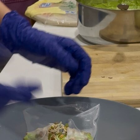 El sábado 24 de enero, tuvimos la oportunidad de preparar recetas veganas internacionales como Shorbat Adas, rollitos vietnamitas, Panelle Siciliani y paté fresco untable de lentejas, champiñones y frutos secos, todo ello usando solo componentes vegetales y centrando el contenido en su valor proteico. Aprendimos a usar materias primas saludables y a prepararlas de forma apetecible y fortalecedora para nuestro cuerpo y mente.