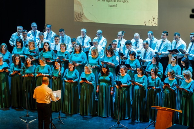 El evento contó con la destacada participación del coro Torrejón Sion de Madrid, que interpretó un repertorio de 17 piezas musicales, y fue presentada con calidez y cercanía por la familia pastoral Adelin y Ela Resmelita, quienes guiaron el desarrollo del concierto con entusiasmo y sensibilidad. Para pedir la presencia y la bendición de Dios, el pastor Adrián Nae abrió el recital con una palabra de oración.