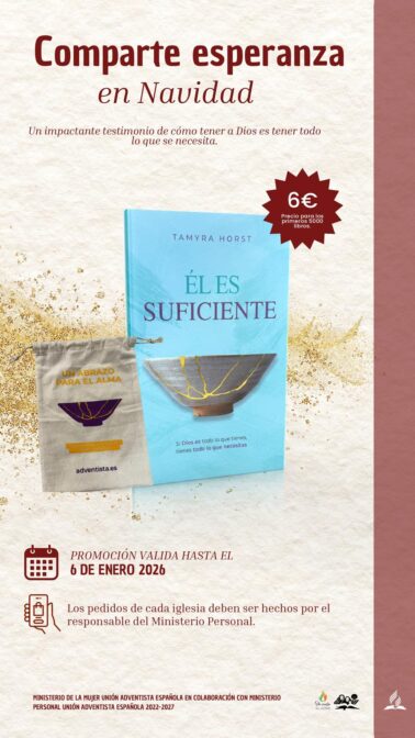 Como cada año, Ministerio Personal y Evangelismo de la UAE lanza la campaña Comparte Esperanza en Navidad, un proyecto destinado a regalar esperanza a nuestros amigos y conocidos. En esta ocasión, el material lo hemos trabajado junto a Ministerio de la Mujer y ofrecemos un libro que va dirigido especialmente a las mujeres, titulado «Él es suficiente», escrito por Tamyra Horst.