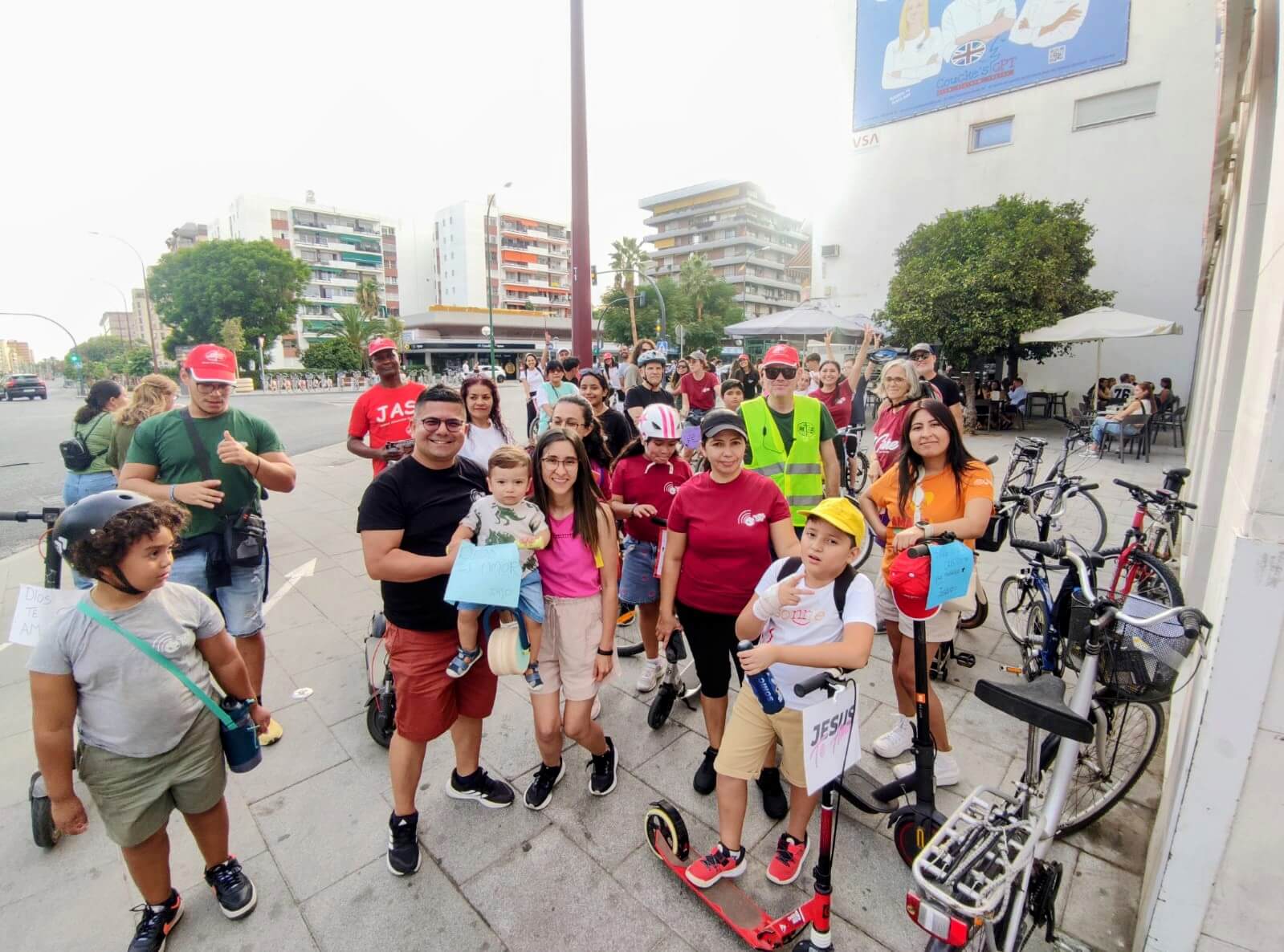 Un numeroso grupo de miembros se unió con alegría para apoyar esta labor. Muchos de ellos sobre ruedas (bicicletas, patinetes, etc.) y otros caminando. Pero todos ellos mostrando la fuerza que surge cuando la iglesia trabaja unida. Los niños participaron con entusiasmo; los jóvenes con energía y creatividad; los adultos con tiempo y dedicación; y los mayores con experiencia y consejos sabios. Todos, desde su lugar, fueron parte activa de esta misión evangelística.