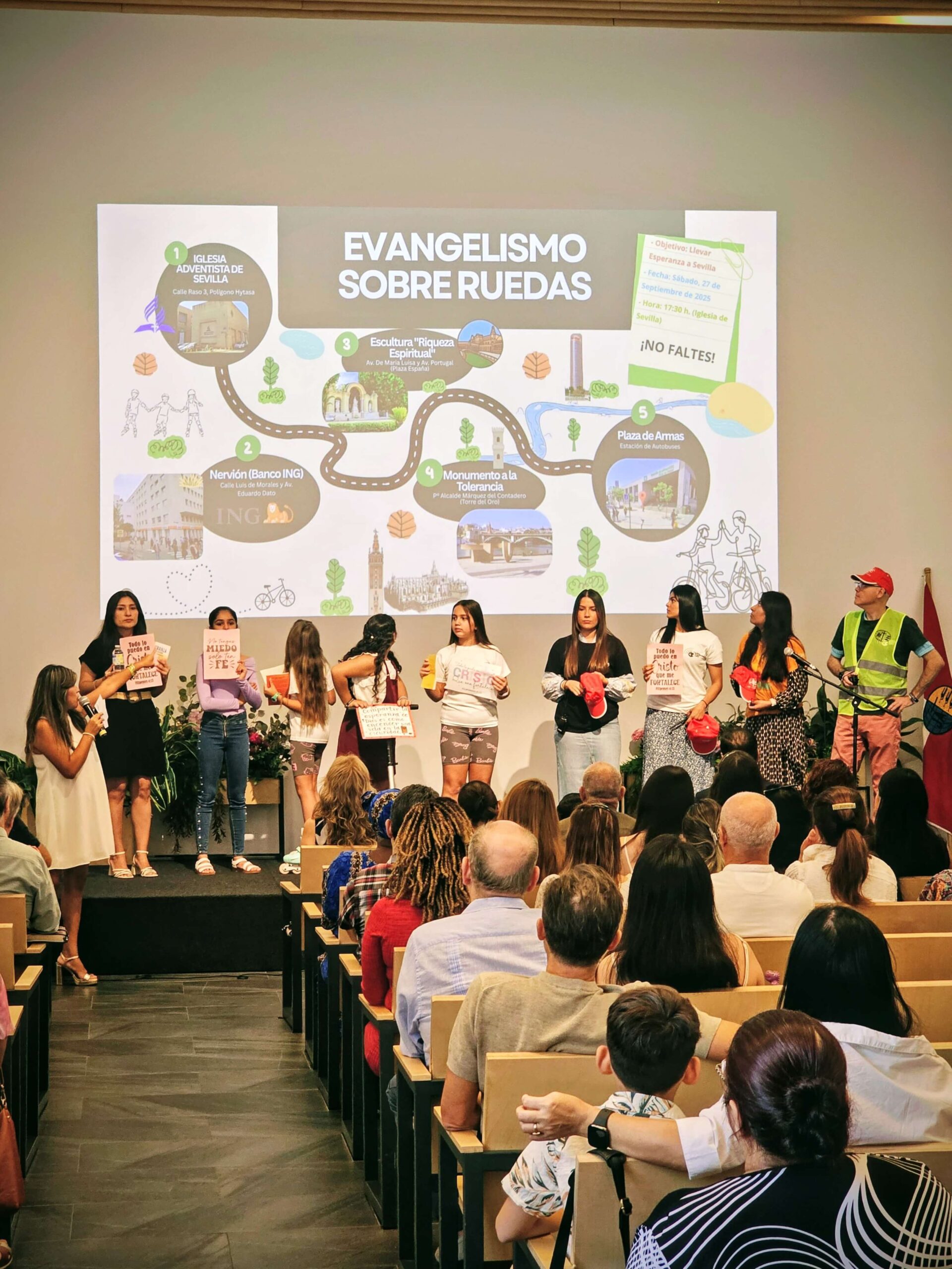 La Iglesia Adventista del Séptimo Día de Sevilla celebró recientemente una campaña de evangelismo sobre ruedas, que unió a niños, jóvenes, adultos y mayores en una misma misión: compartir el mensaje de esperanza en Cristo Jesús. Fue una experiencia llena de fe y compromiso, en la que la comunidad pudo ver el amor de Dios reflejado en cada acción.