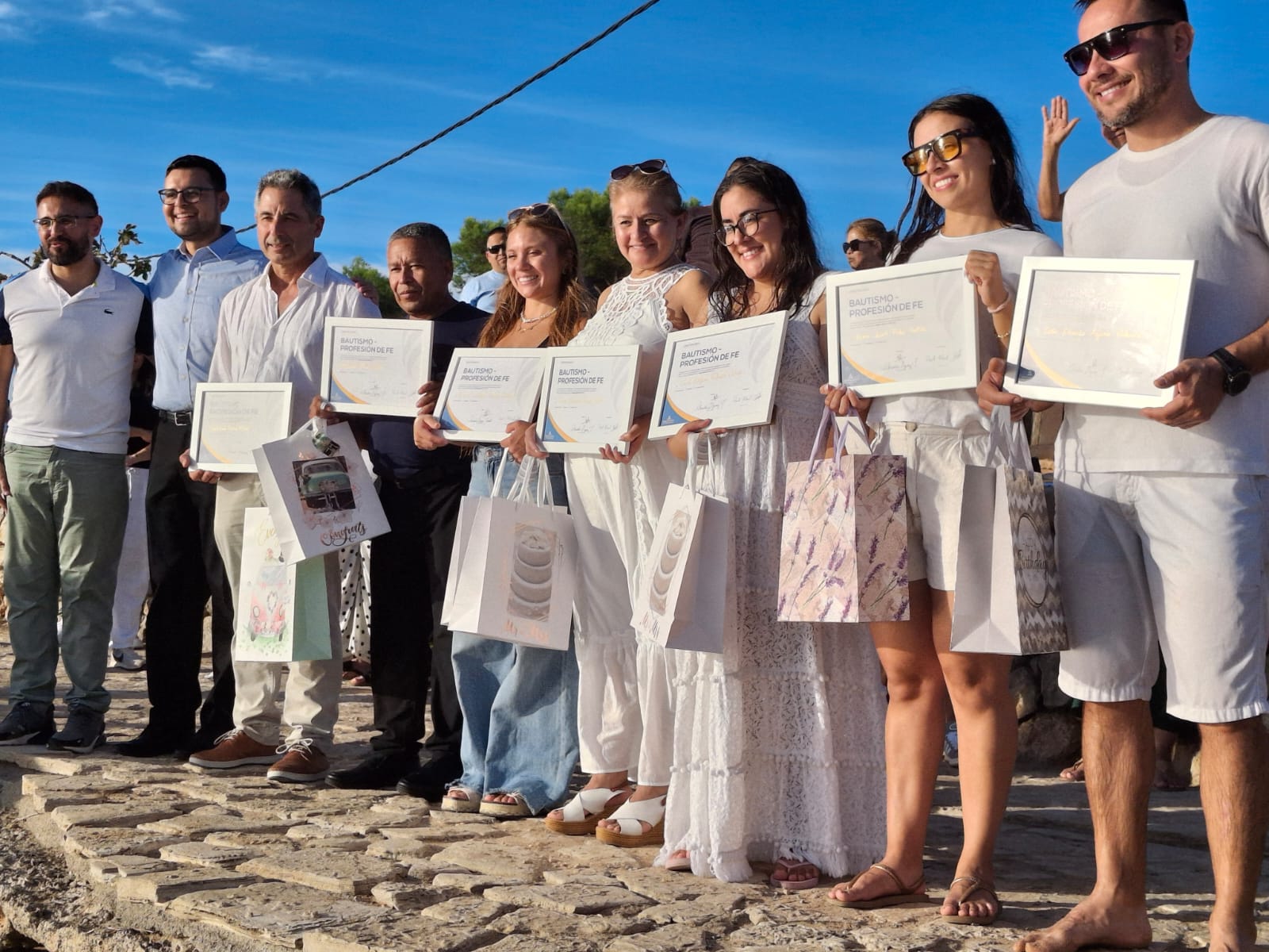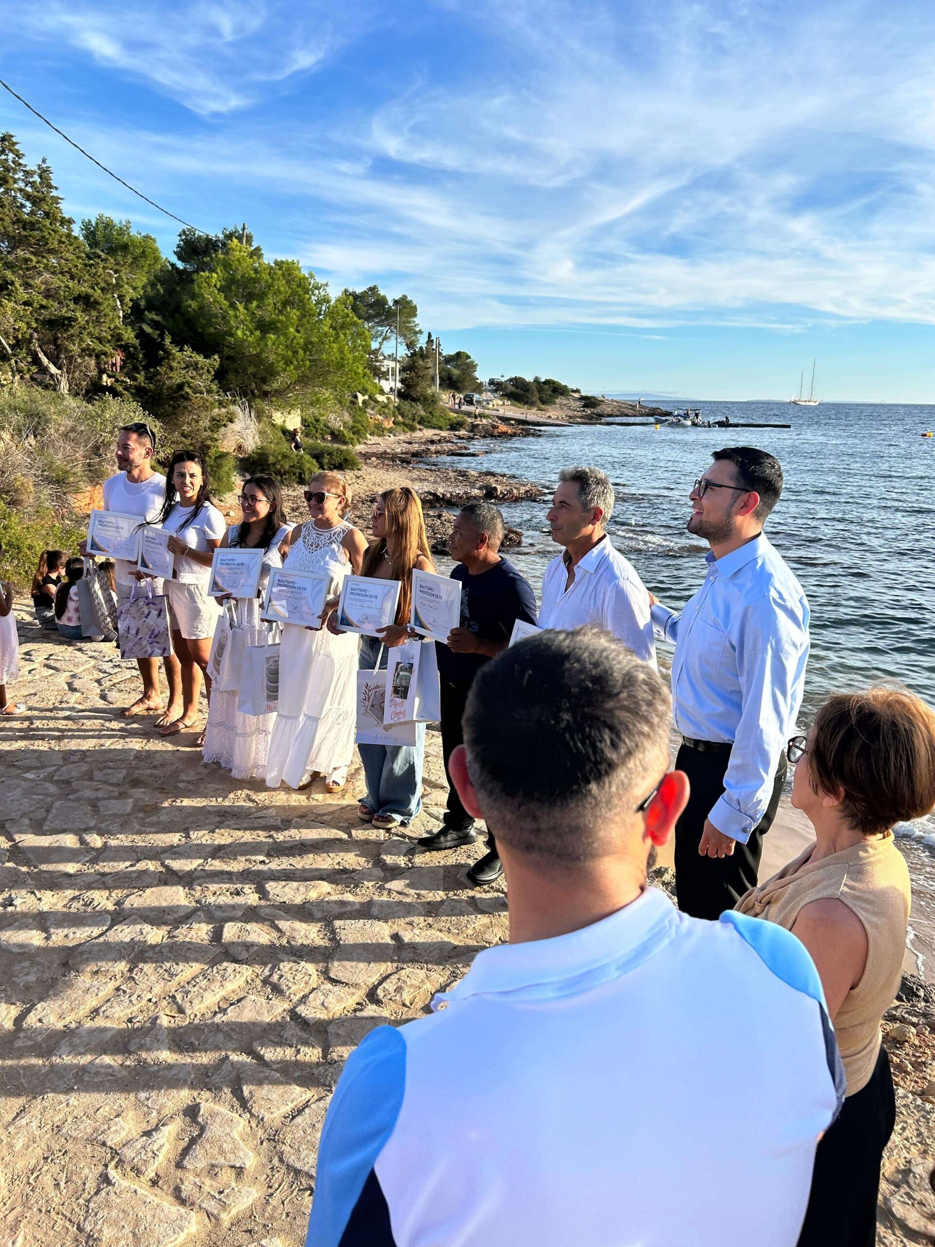 Por la tarde, la iglesia se reunió en la cala Sa Punta, donde siete preciosas almas sellaron su pacto de amor con Jesús en un ambiente de profunda alegría espiritual.