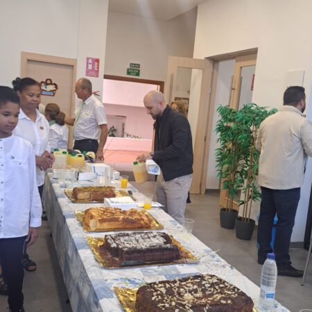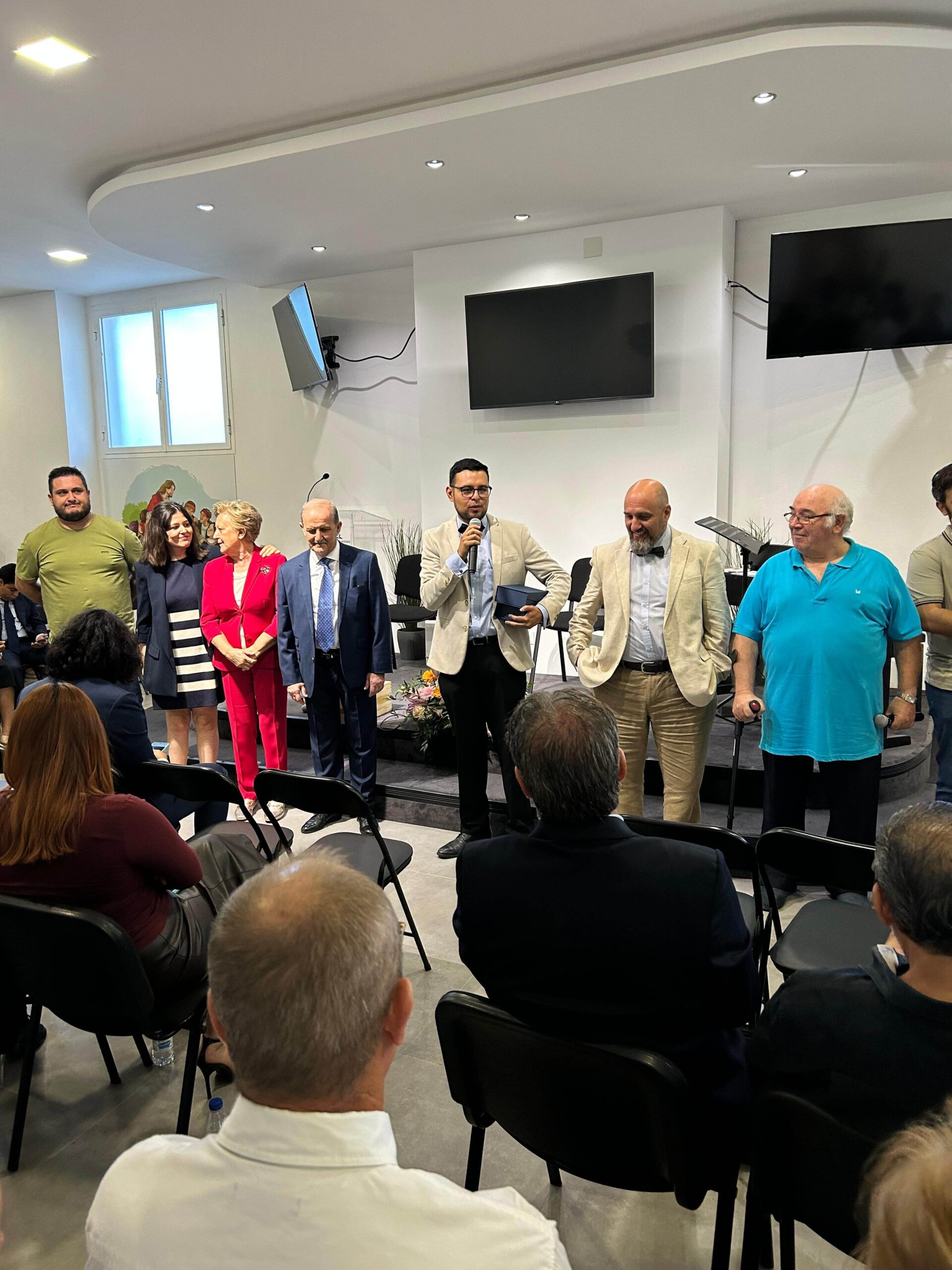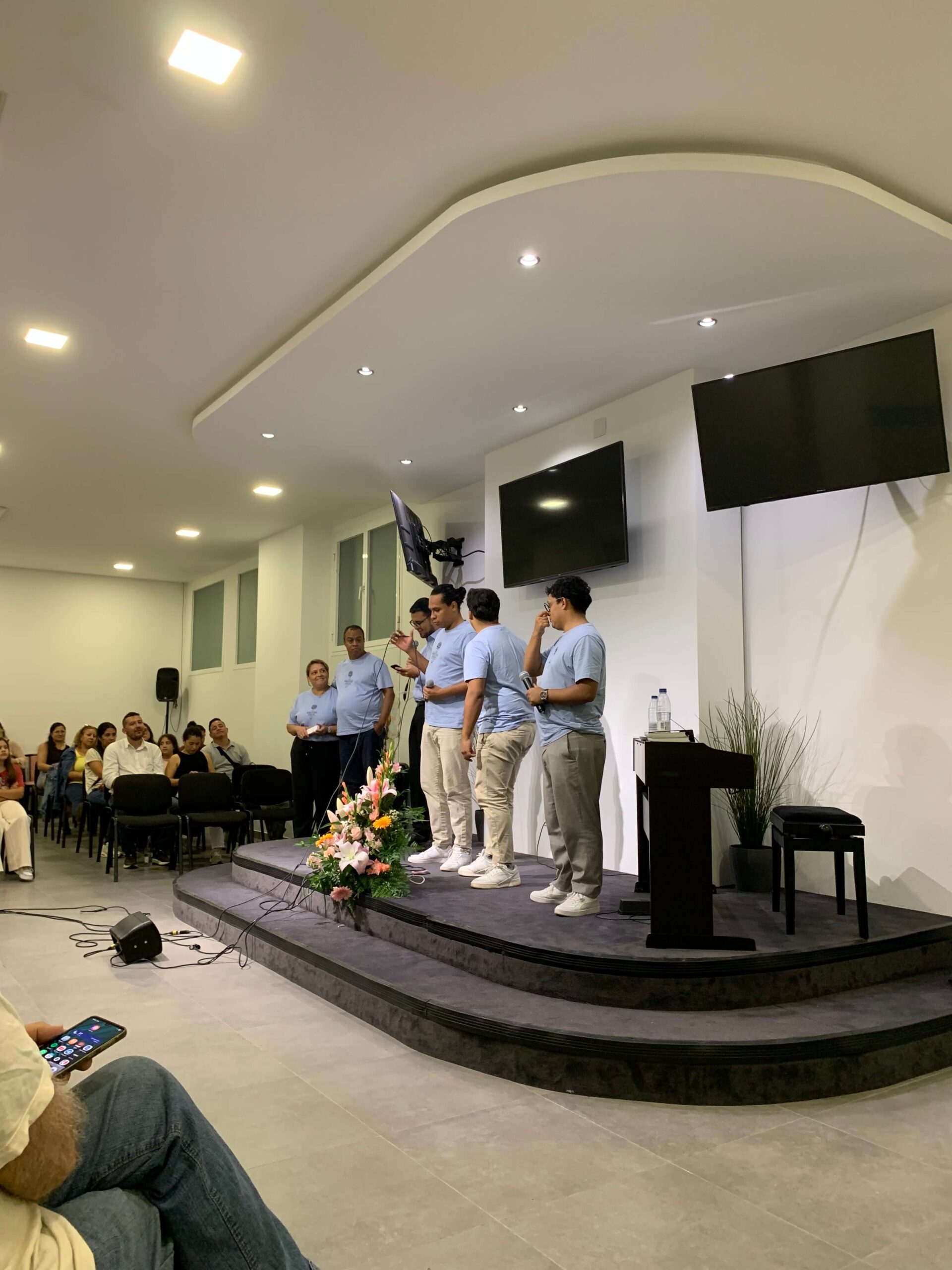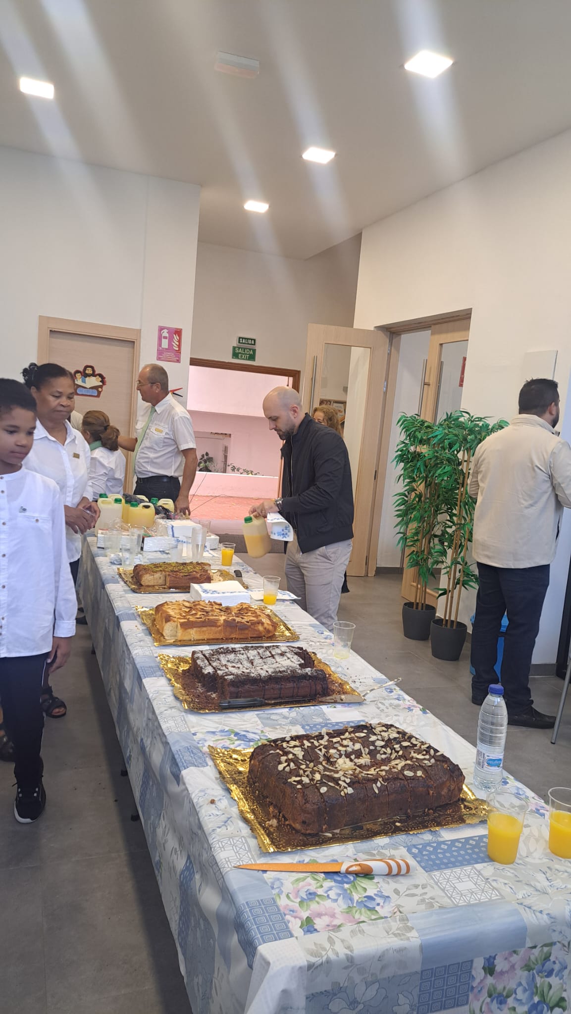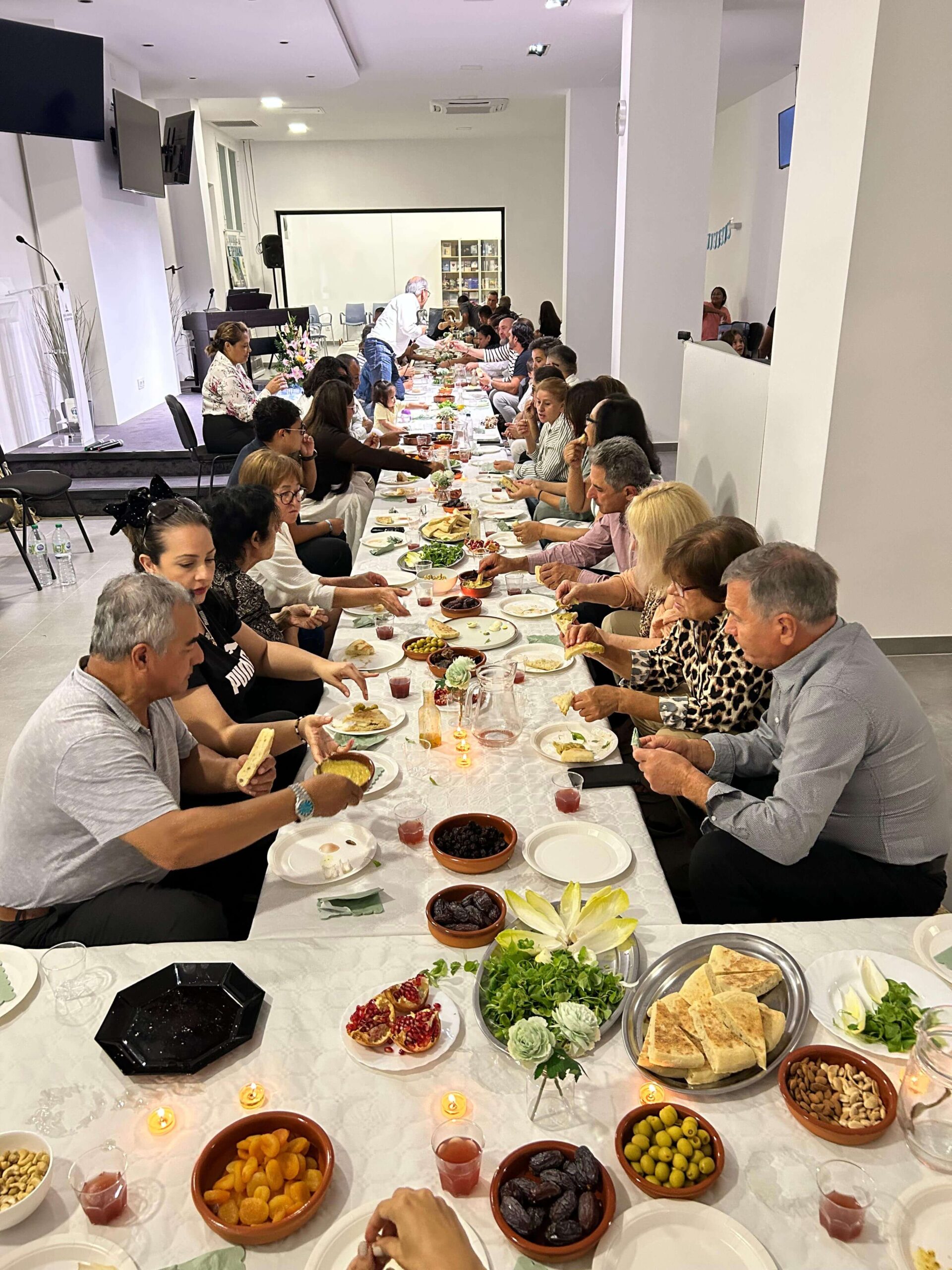 La jornada continuó con una comida fraternal llena de sabores y compañerismo, culminando con la tarta de aniversario, un bizcocho de leche con toques de limón, relleno de mermelada de fresa natural y cubierto con nata vegana. El agradecimiento se extendió al equipo de diáconos y diaconisas, al equipo de megafonía, a la coordinadora general del evento, Alba, y a toda la directiva de la iglesia por su entrega y dedicación al servicio del Señor.