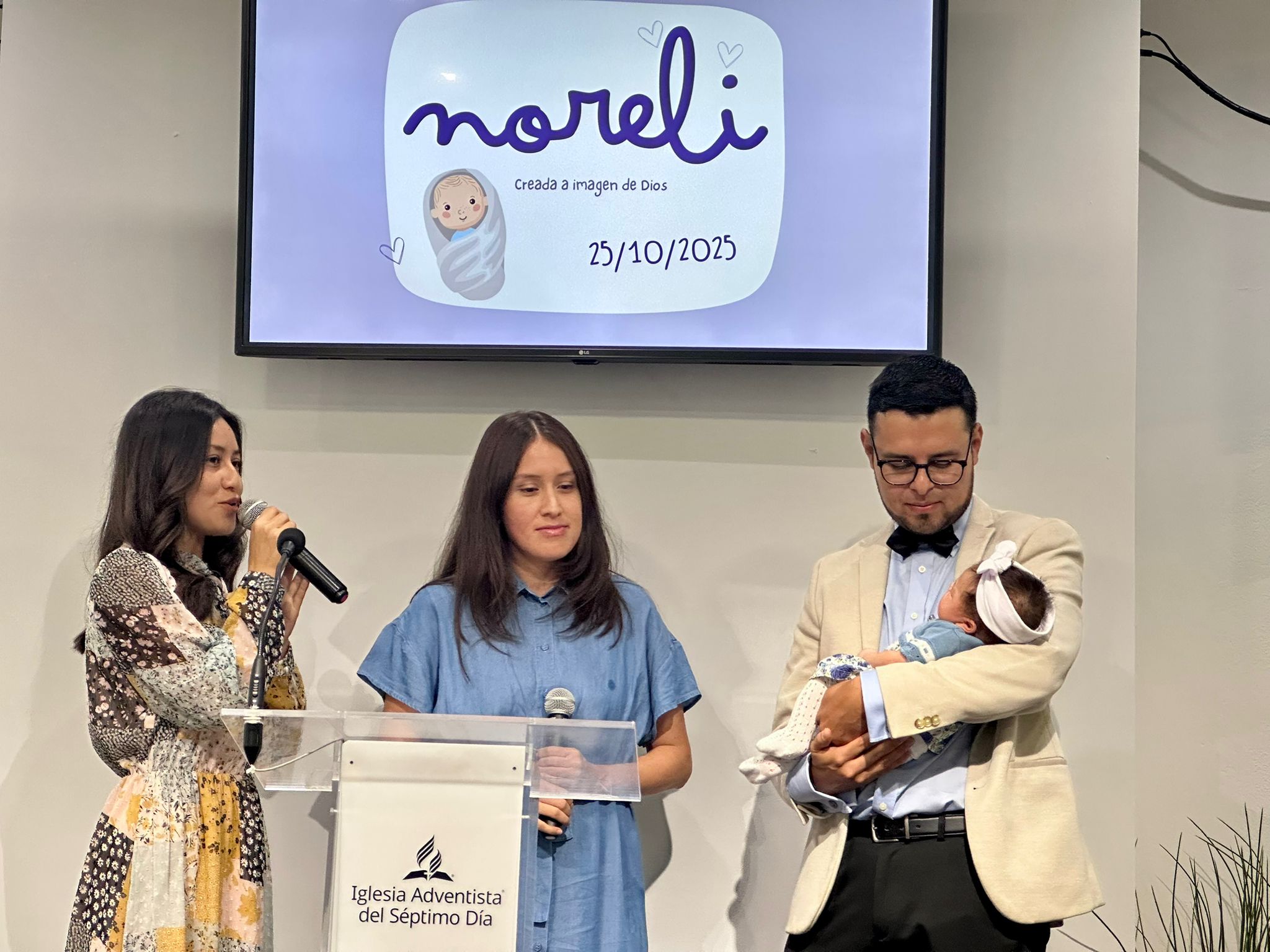 Uno de los momentos más entrañables fue la presentación de la pequeña Noreli Domínguez López, hija del matrimonio pastoral que actualmente sirve en la isla.