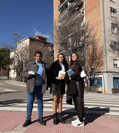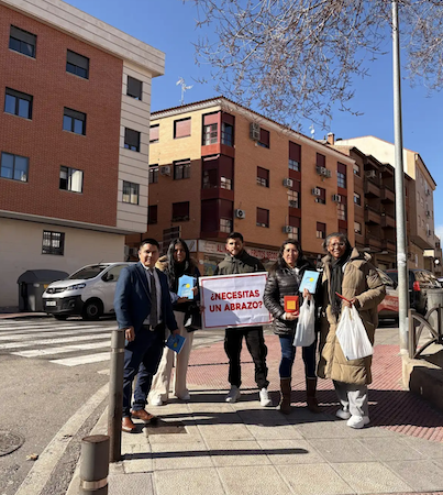 Tras las actividades realizadas en el templo, los jóvenes dieron continuidad a la jornada con una acción práctica de servicio comunitario. Equipados con pancartas que contenían mensajes de amor, esperanza y consuelo, se organizaron para salir a distintos puntos estratégicos de la ciudad de Toledo. Entre los lugares visitados se encontraron la Estación de Tren, el Paseo de la Rosa y el barrio de Santa Bárbara, espacios concurridos donde pudieron interactuar con numerosas personas.