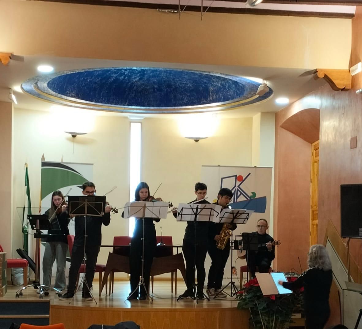 La Orquesta Juvenil Harmonía de la Iglesia Adventista de Jaén puso la nota emotiva al acto de entrega de premios a la mejor tarjeta navideña, organizado por el Patronato de Asuntos Sociales del Ayuntamiento, ofreciendo un concierto de villancicos que llenó de alegría y cercanía a personas mayores, cuidadores y familiares.