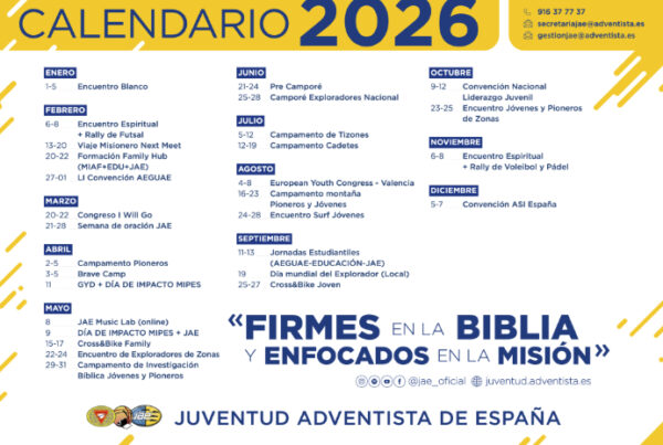 Diego Angulo | Actualidad Adventista, Destacado, Nacional | No Comments¡Descarga el calendario JAE para este año 2026! y entérate de los cambios de fecha del congreso I Will Go y el Global Youth Day.