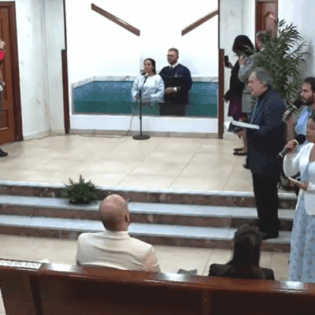 Paso seguido se dio inicio a la lectura y aceptación de los votos bautismales por parte de Yadira G. Q., quien después de haberse preparado con estudios bíblicos, manifestó de manera pública su deseo de entregar su vida a Dios.