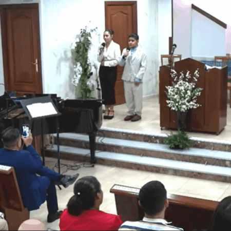 Durante la dedicación del pequeño Elliah, pudimos disfrutar de un especial a cargo de sus jóvenes tíos, Odet Manrique y Daniel (Perú) Manrique, quienes alabaron al Señor con sus tiernas voces.