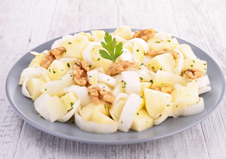 Ensalada de endivia, manzana y nueces Las endivias son muy beneficiosas para la salud intestinal, por su fibra y mucílagos, que protegen la mucosa intestinal. Además tienen ciertas propiedades diuréticas….