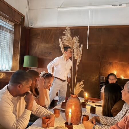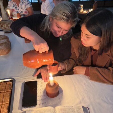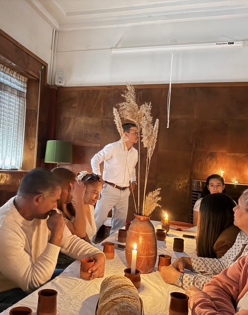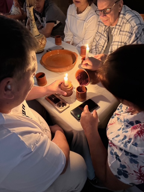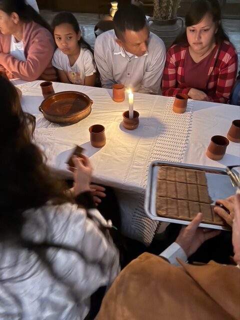 La ceremonia estuvo acompañada de un ambiente profundamente bíblico. Para la ocasión se utilizaron vasos y jarras de barro utilizadas exclusivamente para este acto, reforzando el carácter especial del momento. Las mesas bajas, la iluminación tenue de las velas y las melodías hebreas ayudaron a evocar en la mente de los presentes lo que pudo haberse sentido en la cena junto a Jesús.