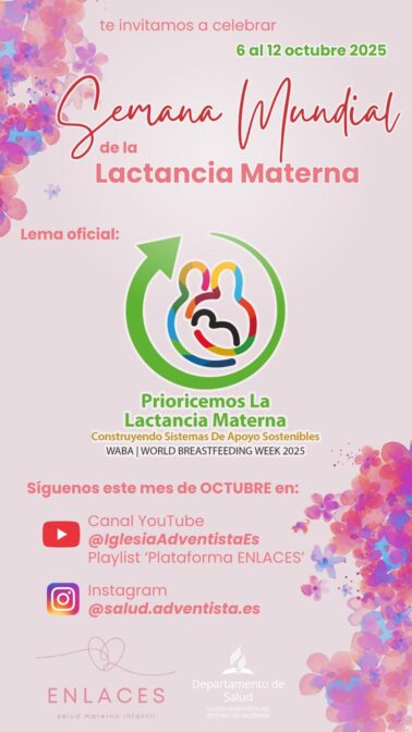 La Semana Mundial de la Lactancia Materna 2025 se conmemora en Europa y en España del 6 al 12 de octubre. Esta ocasión ofrece un tiempo especial para promover y apoyar este pilar fundamental de la salud. Como adventistas, además, destacamos el aspecto espiritual de la lactancia como alimento que Dios diseñó para el inicio de la vida y para transmitir Su amor mediante el vínculo creado entre madre y bebé.