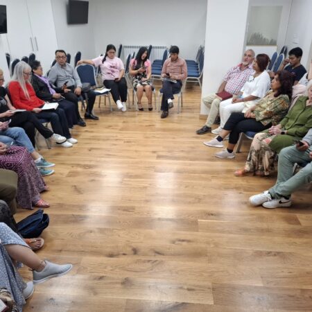La vigilia fue organizada por el Ministerio de la Mujer, con el valioso apoyo de toda la iglesia, que se unió en cada participación, canto, dinámica y oración. El personaje central fue Mefiboset, quien los llevó a reflexionar sobre las emociones y cómo gestionarlas desde la fe. La actividad fue completada con la intervención de la psicóloga Ruth Somolinos. Ruth compartió pautas prácticas y científicas para comprender mejor este tema desde una perspectiva cristiana.