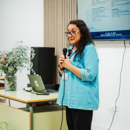 Cada año supone un reto para el equipo seleccionar y solicitar a un ponente o una ponente que aporte su conocimiento y su disponibilidad para el evento. Este año tuvimos el privilegio de contar con Glenda Villamarín, que nos visitó desde Ecuador. A Glenda la respalda un bagaje de experiencia y formación exquisitas, siendo psicóloga clínica y formadora de profesionales. Ella nos acercó a terapias realmente sanadoras como EMDR, Brainspotting o Teraplay, que ayudan a procesar y sanar las experiencias traumáticas que han quedado bloqueadas en el cerebro.